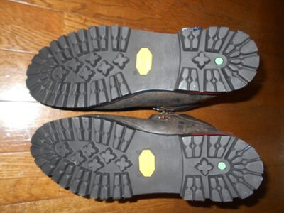 写真を見てわかるとおり、ソールはごっつい重登山靴用(ビブラム1149)がきれいに付いていて、見た目も強そうになりました。