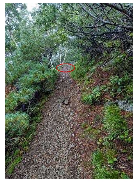 登山道上の襲撃現場(赤丸の位置) 出典:知床ヒグマ対策連絡会議資料